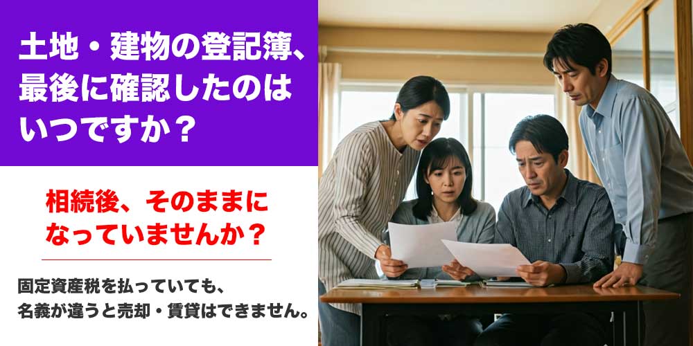 三愛プラザでは登記簿の名義確認から、相続整理・売却・賃貸管理までワンストップでご相談いただけます。