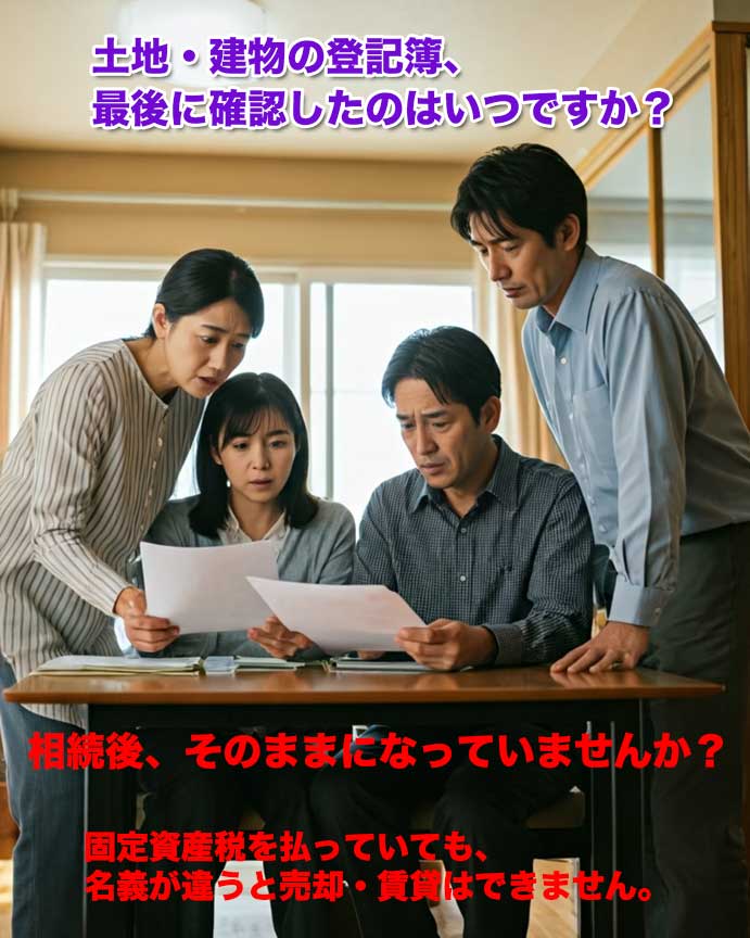 A. いいえ。税金と登記は別です。売却・賃貸には名義整理が必要です。
